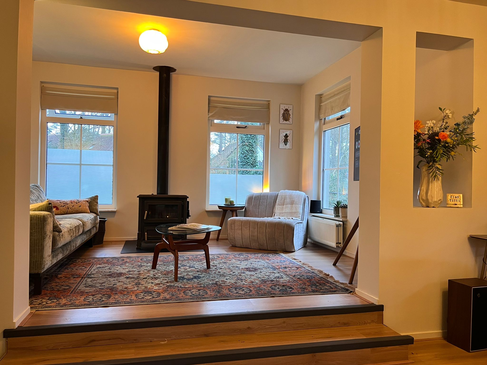 Verblijf in dit stijlvol en luxe ingerichte huisje, dat recent volledig is gerenoveerd en van alle gemakken is voorzien. De woning beschikt over een moderne badkamer en een apart toilet en biedt een comfortabele en sfeervolle omgeving voor een ontspannen verblijf.
